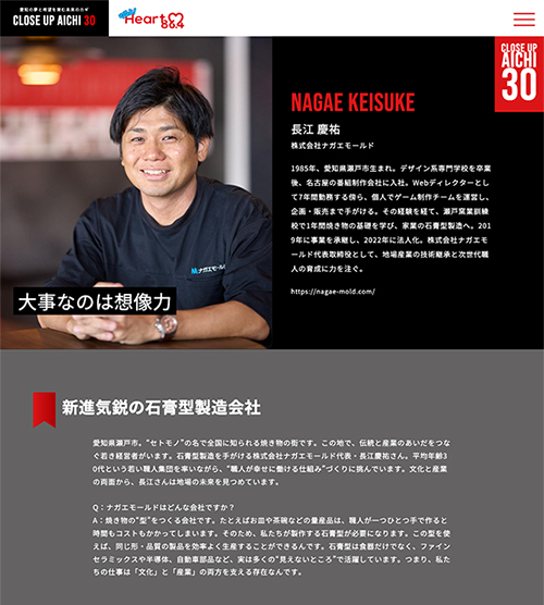 「CLOSE UP AICHI 30」の30社の中に選出されました 投稿公開日:2025年11月4日 11月1日に公開された「CLOSE UP AICHI 30」の30社の中に選出して頂きました。有名で老舗な会社さんと一緒に並べて頂けることがとても光栄で今後のさらなる活力になります。 株式会社ナガエモールド おすすめ 「愛知を代表する企業100選」に選出されました 2024年9月1日 「経道 KEIDO」に取材されました 2025年7月1日 Zoomミーティング可能です 2024年5月1日